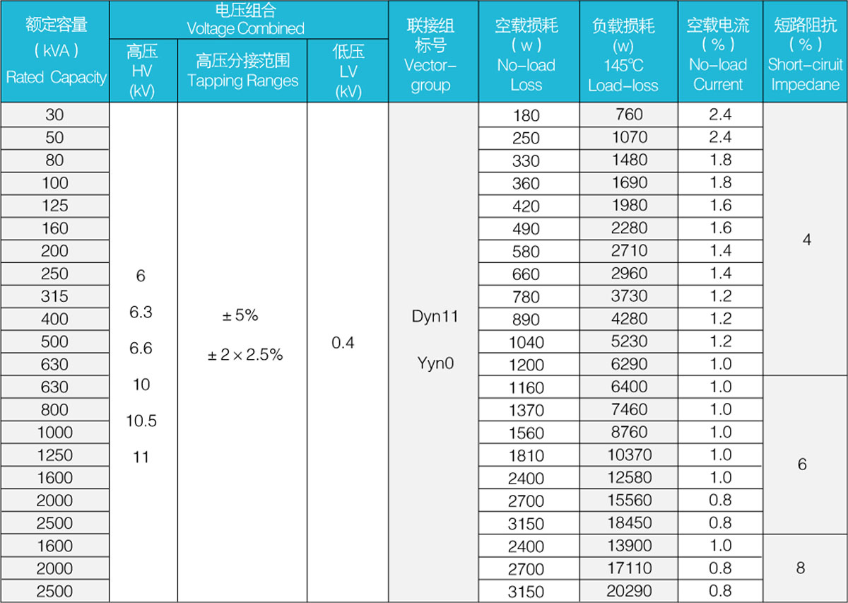 6. 損耗低,節(jié)能效果好,與SC9系列干式變樂基相比空載損耗平均下降10%,負載損耗下降5%。