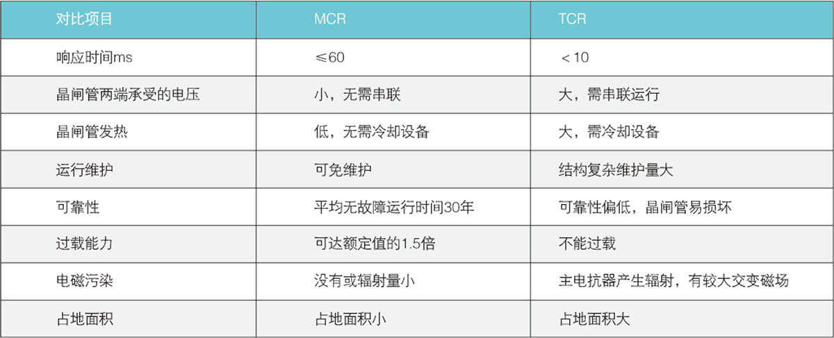 ◆響應(yīng)速度快:不同電壓等級MCR動態(tài)響應(yīng)時間如下: